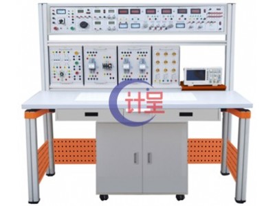 装置由电源控制箱、实验桌(装有九孔*插件板)、电气控制实验挂箱,实验挂箱支架、移动矮柜、示波器架、透明创新实验模块(盒)、学生凳等组成。实验装置支架与实验桌可组合、可拆装。支架与桌脚一体,铝合金结构;电气控制实验挂箱与各实验模块可根据实验需求自由组合实验。