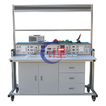 铝合金活动框架:框架上面可以放标准挂板模块,可随意扩展,完成多门多种实验,另配置1个活动柜,方便存放所需工具和实验元件盒。