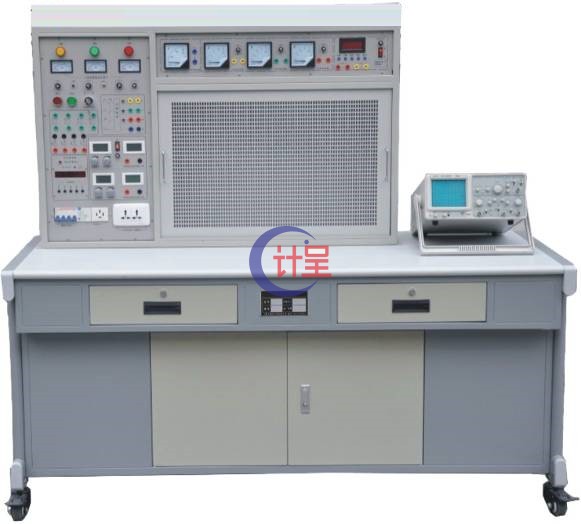 四、实训操作桌:铁质双层亚光密纹喷塑,桌面为防火、防水、耐磨高密度板,设有抽屉和元件储存柜,结构坚固、造型美观大方。